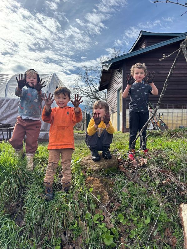 Root & Rise is the educational arm of Tierra Ohana Farm. We nurture early learners with a nature-based curriculum that blends regenerative agriculture, forest exploration, and whole-child education. Our 8 acres of land located in southwest Medford on Pioneer road are a mix of farmland, gardens, orchards and more wild oak grove hillsides teeming with native plants and wildlife. At Root & Rise children move through our learning stations during their days, learning stations include our harvest kitchen, the children's garden, music stations, nature discovery zone and homestead station.